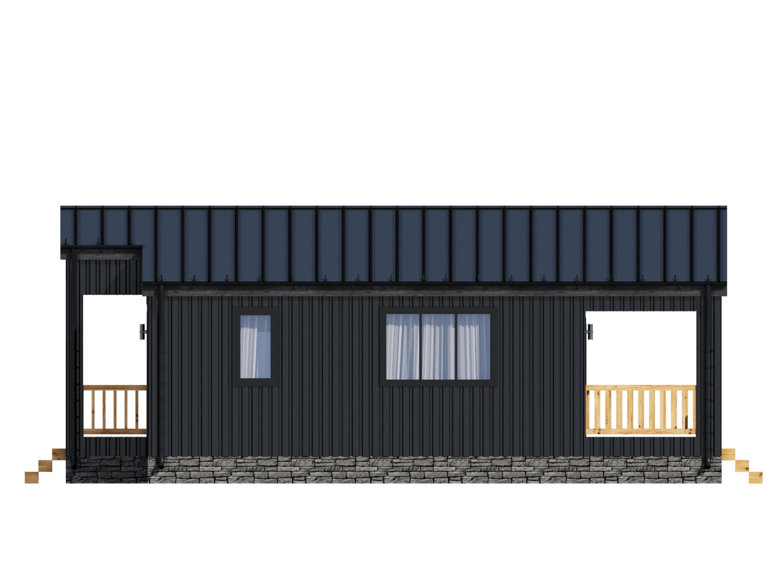 Проект КД-1010 – это каркасный дом в стиле БарнХаус. Это полноценный загородный дом предназначенный для круглогодичного комфортного проживания семьи из 2-4 человек.
