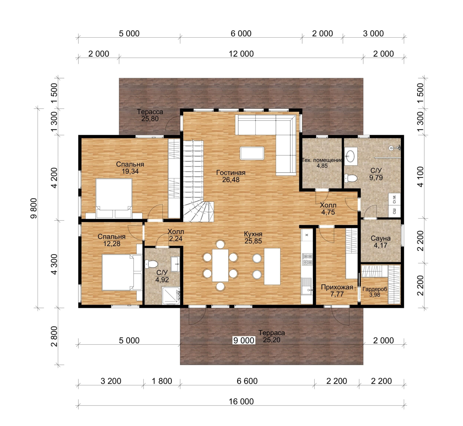 Проект: КД-1050 | Размер: 14,3Х16,2 м | Цена: от 5 926 411 руб.