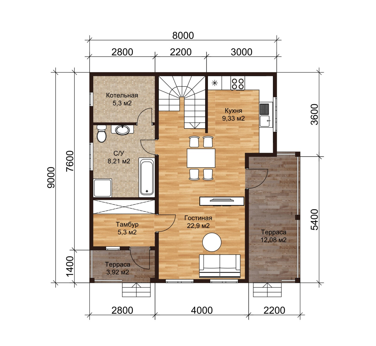 Компактный коттедж КД-110 станет отличным выбором для семьи, которая хочет жить в собственном доме, а не в квартире. Несмотря на свой относительно небольшой метраж, этот дом предоставит своим жильцам комфорт и уют.