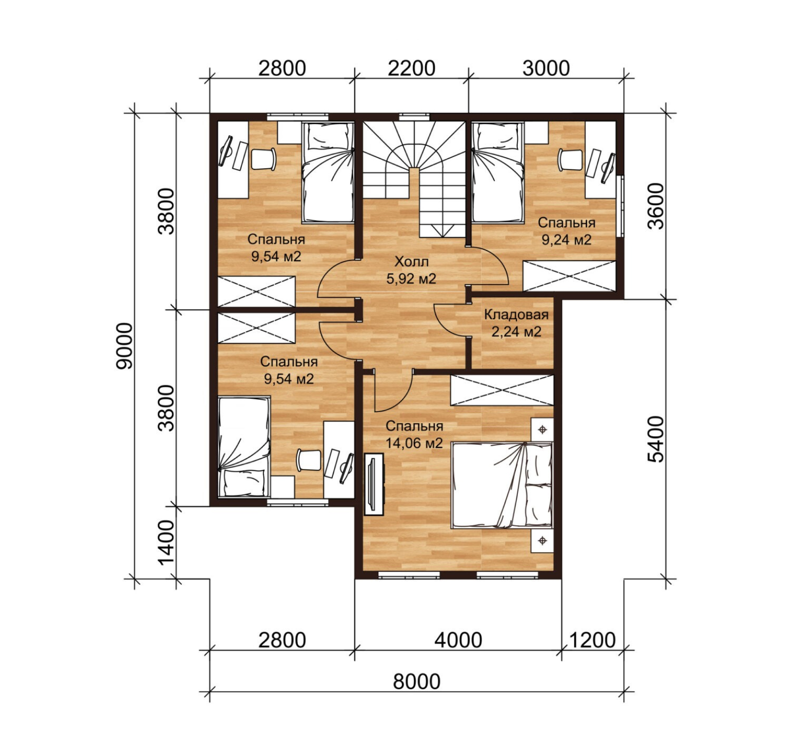 Двухэтажный каркасный коттедж, 117.58 м²