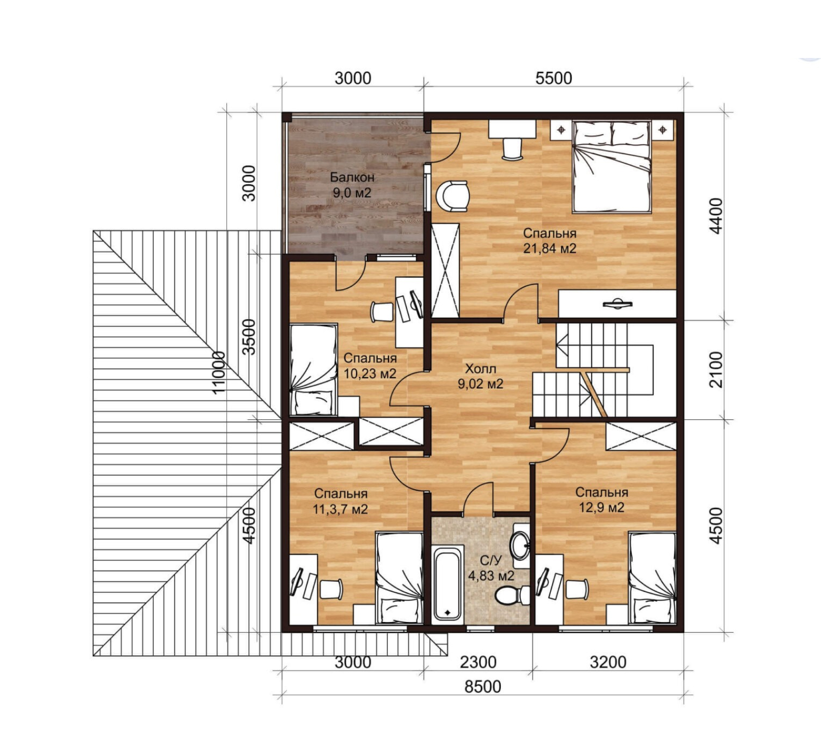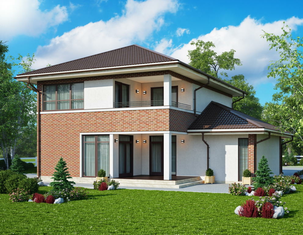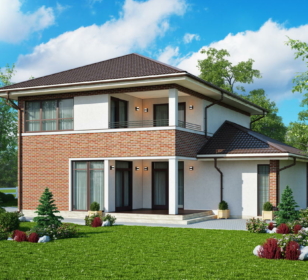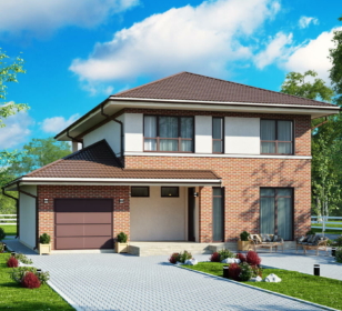 Роскошный двухэтажный коттедж КД-130 – в нем есть всё для комфортного проживания большой семьи: 5 спален, 2 с/у, просторная кухня, гостиная, подсобные помещения, балкон и гараж. Ключевым преимуществом данного дома является простор внутренних комнат и удобство расположения. В таком доме, благодаря разделению жилых помещений по этажам, наличию двух санузлов и просторной гостиной, может без стеснений проживать большая семья.