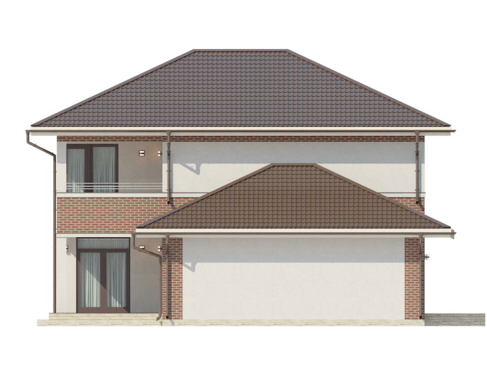 Двухэтажный каркасный дом с балконом и гаражом, 184.18 м²
