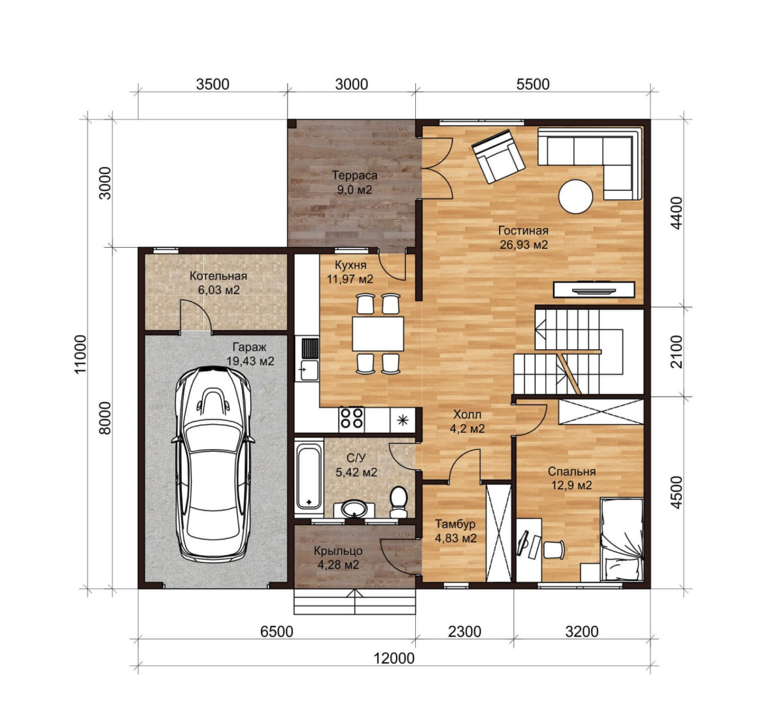 Проект: КД-130 | Размер: 11×12 м | Цена: от 5 680 000 руб.