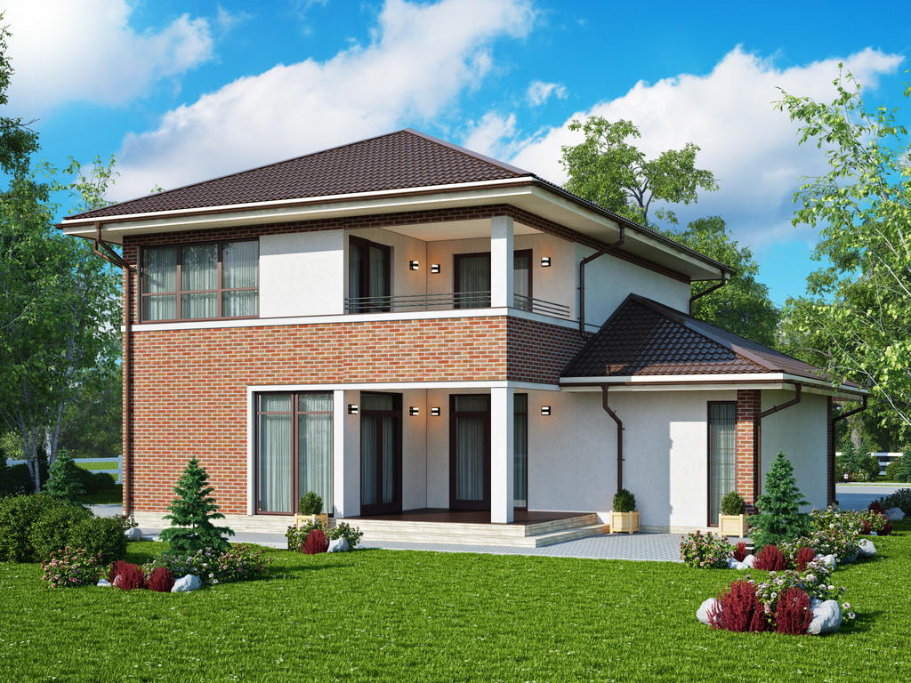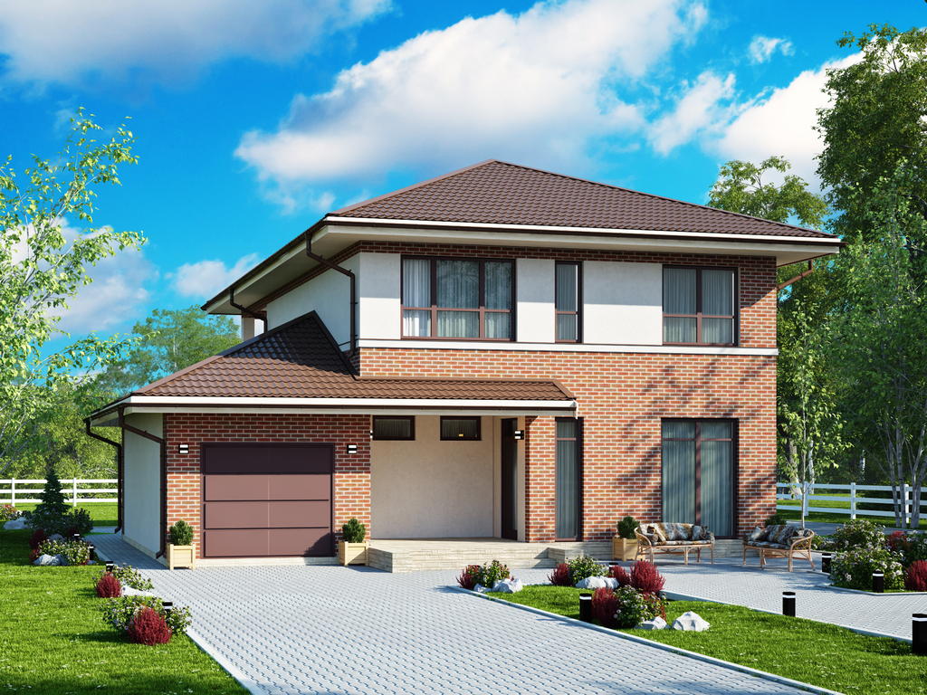 Роскошный двухэтажный коттедж КД-130 – в нем есть всё для комфортного проживания большой семьи: 5 спален, 2 с/у, просторная кухня, гостиная, подсобные помещения, балкон и гараж. Ключевым преимуществом данного дома является простор внутренних комнат и удобство расположения. В таком доме, благодаря разделению жилых помещений по этажам, наличию двух санузлов и просторной гостиной, может без стеснений проживать большая семья.