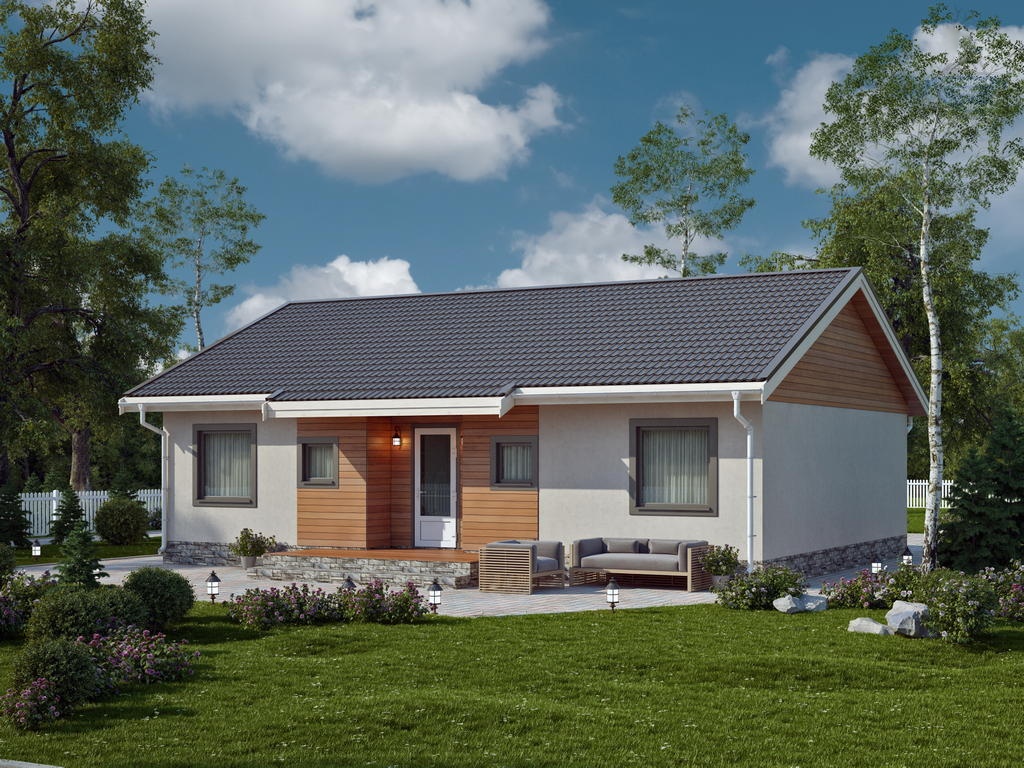 Одноэтажный дом с котельной и террасой, 98.36 м²