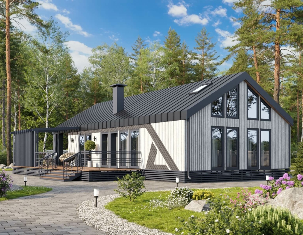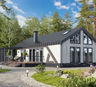 Вместительный, модный и стильный дом КД-220 в стиле Barn House заинтересует хозяев, предпочитающих передовые направления в архитектуре. Дом выглядит великолепно. На первом этаже расположены три спальни, санузел, технические помещения, кухня-столовая с гостиной, которая поразит вас своей функциональностью и огромная терраса, являющаяся частью самого дома, которая с одной стороны закрыта наружной стеной, что создает уютный угол для обустройства лаунж-зоны. На верхнем этаже планировкой предусмотрены две антресоли (одна из которых – жилая).