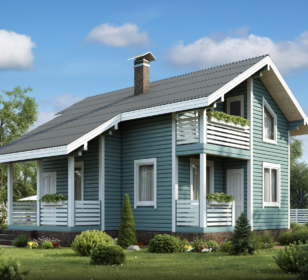 Проект КД-300 – это дом в классическом стиле с двумя открытыми террасами и эркером. Дом не стандартной геометрической формы и этим он выделяется среди прочих похожих проектов, эркер здесь служит исключительно для размещения в нем межэтажной лестницы.