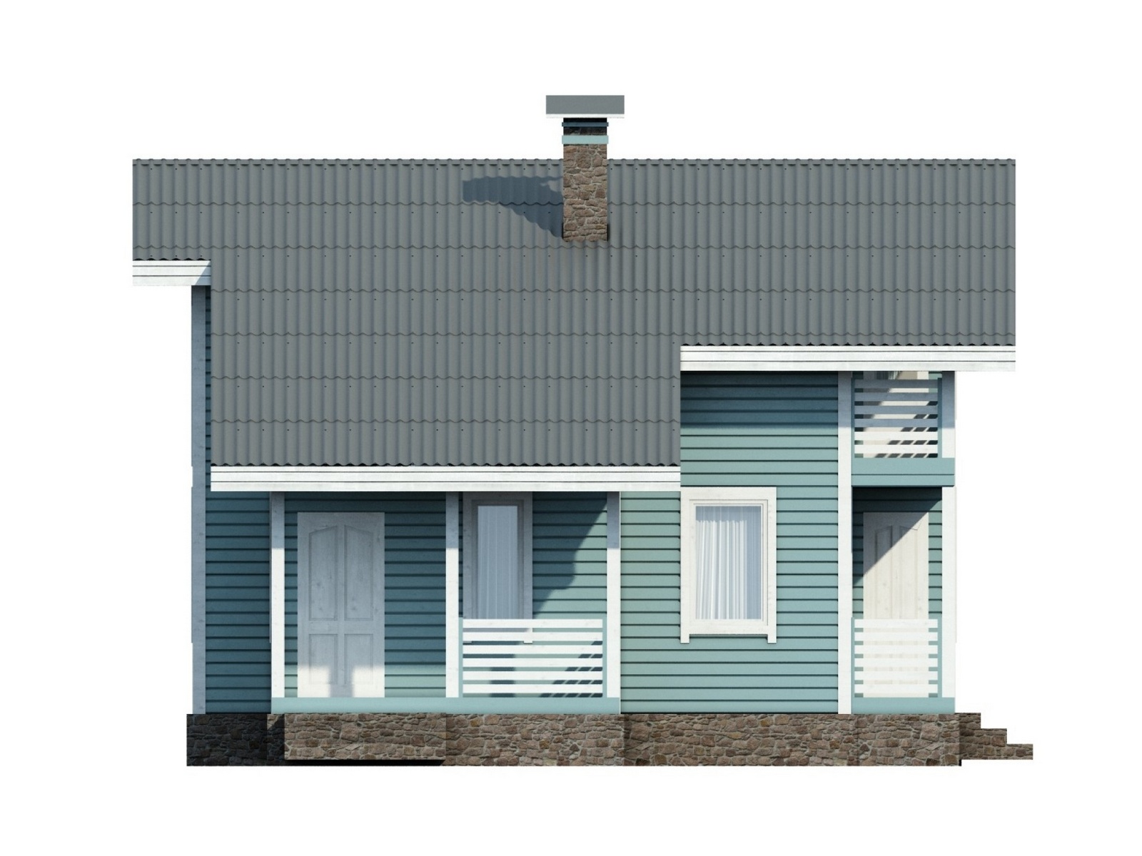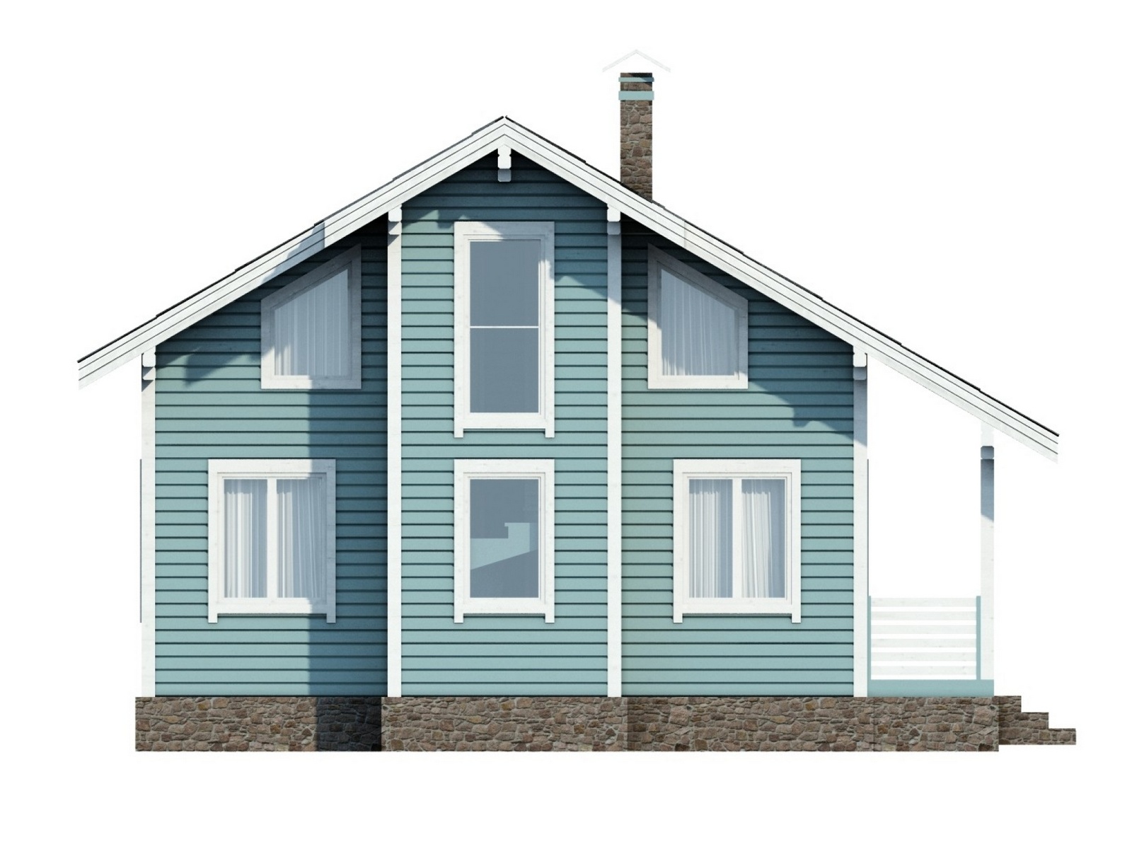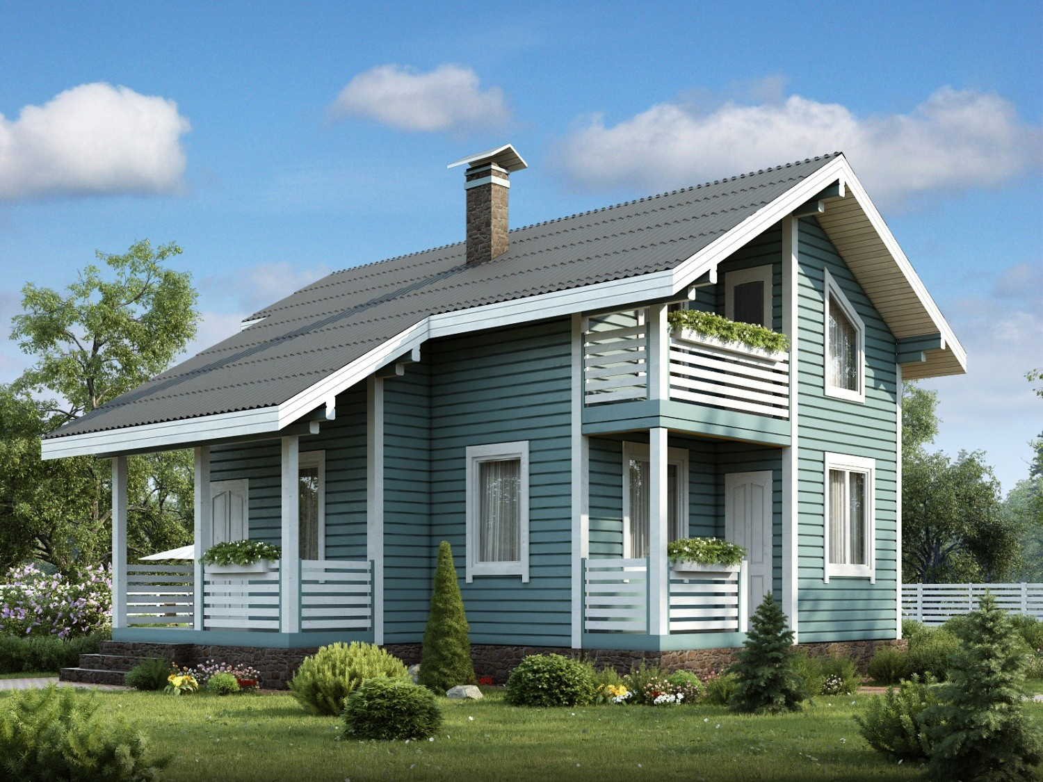 Спальня на первом этаже порадует уставших с дороги гостей, а в двух спальнях на мансарде комфортно расположатся еще две семьи, кабинет для работы легко переоборудовать в дополнительную спальню или детскую. Два сан. узла на обоих этажах дополняют общую функциональность проекта.