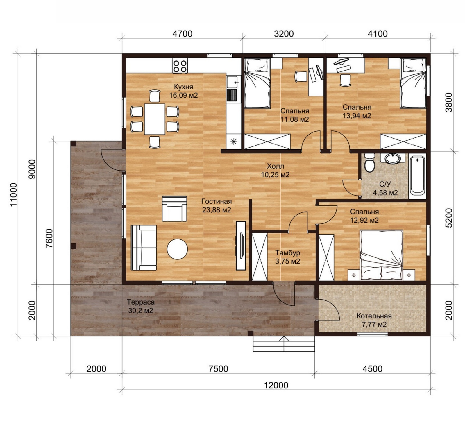 с котельной и террасой, 134 м²