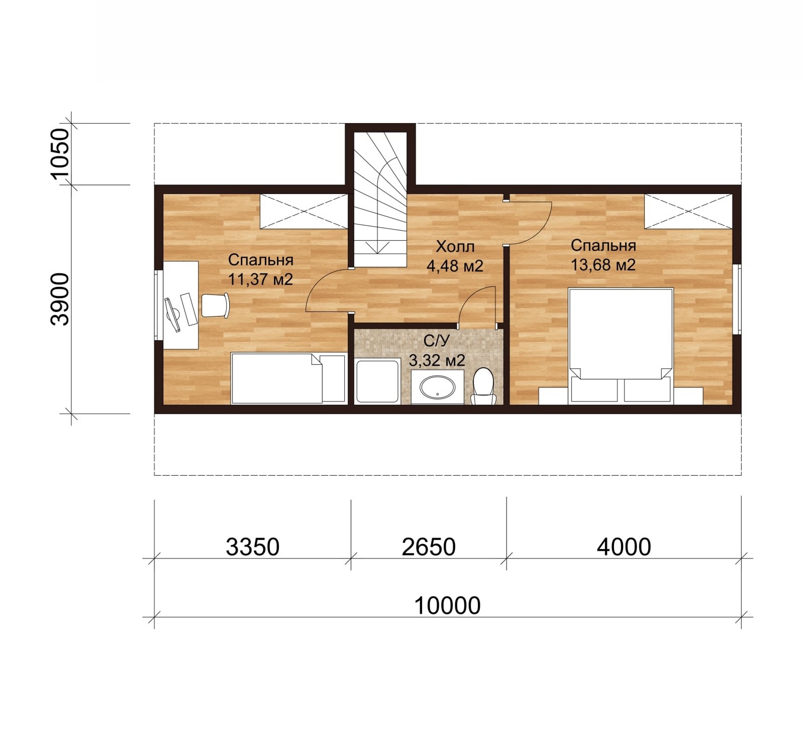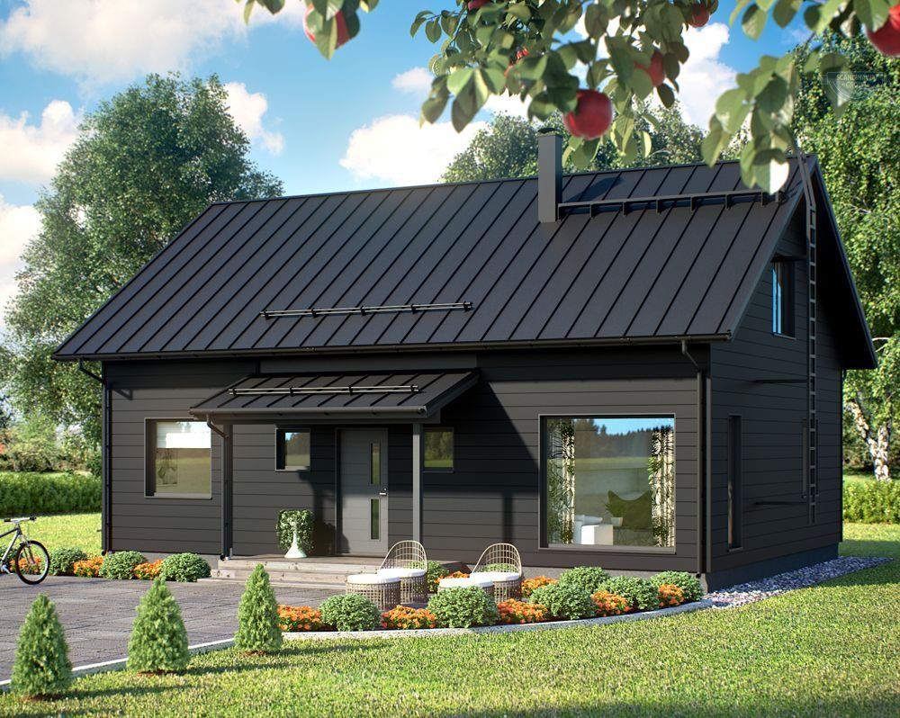 Одноэтажный каркасный дом с мансардой, 97 м²