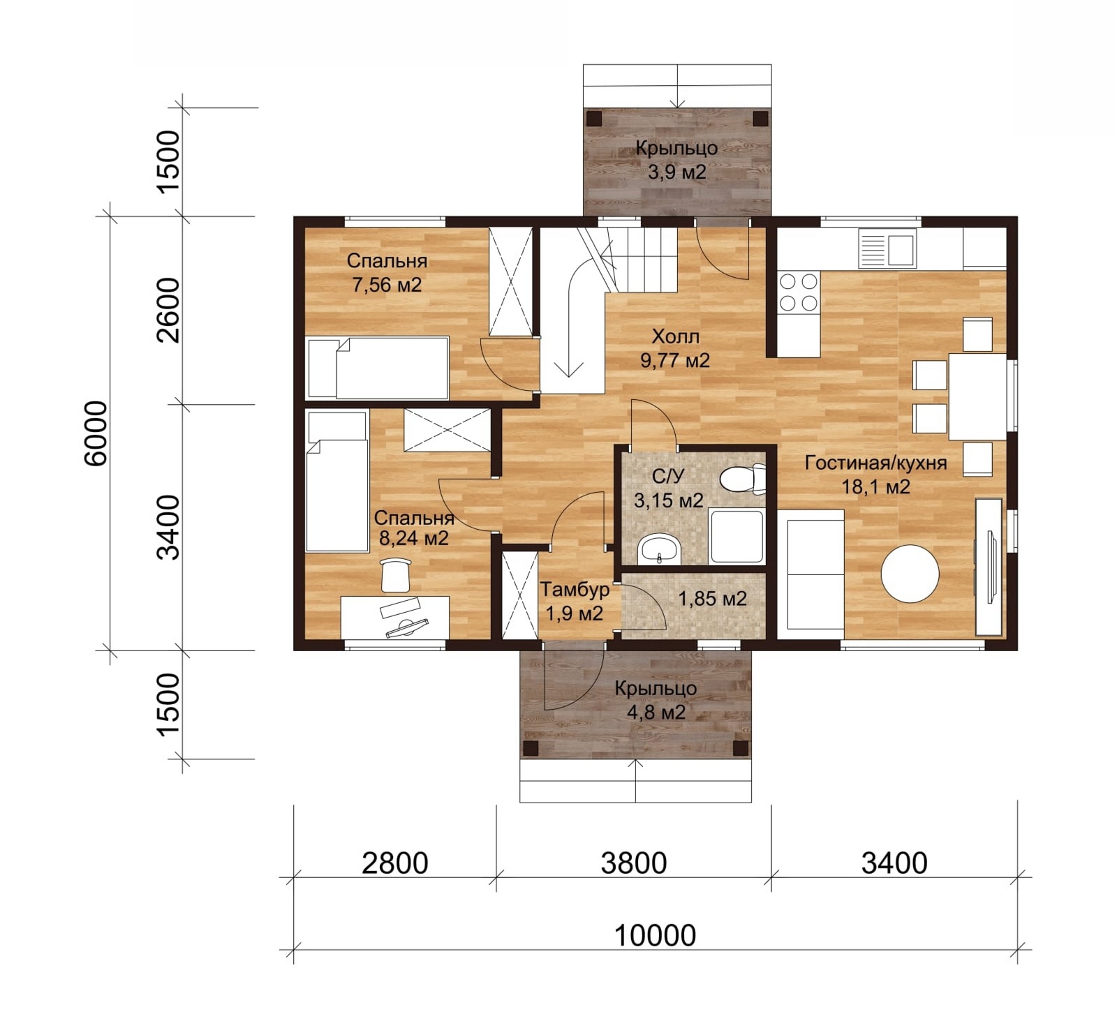 Проект: КД-360 | Размер: 6Х10 м | Цена: от 2 832 340 руб.