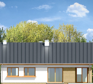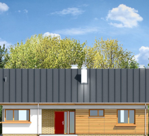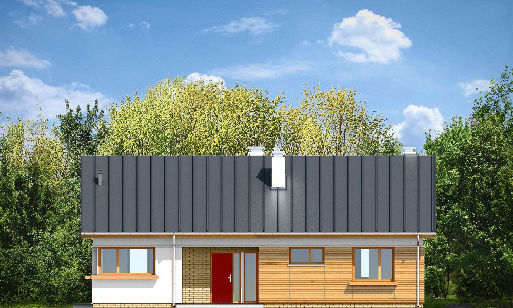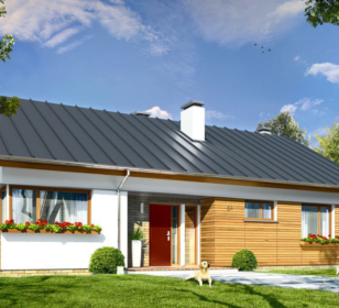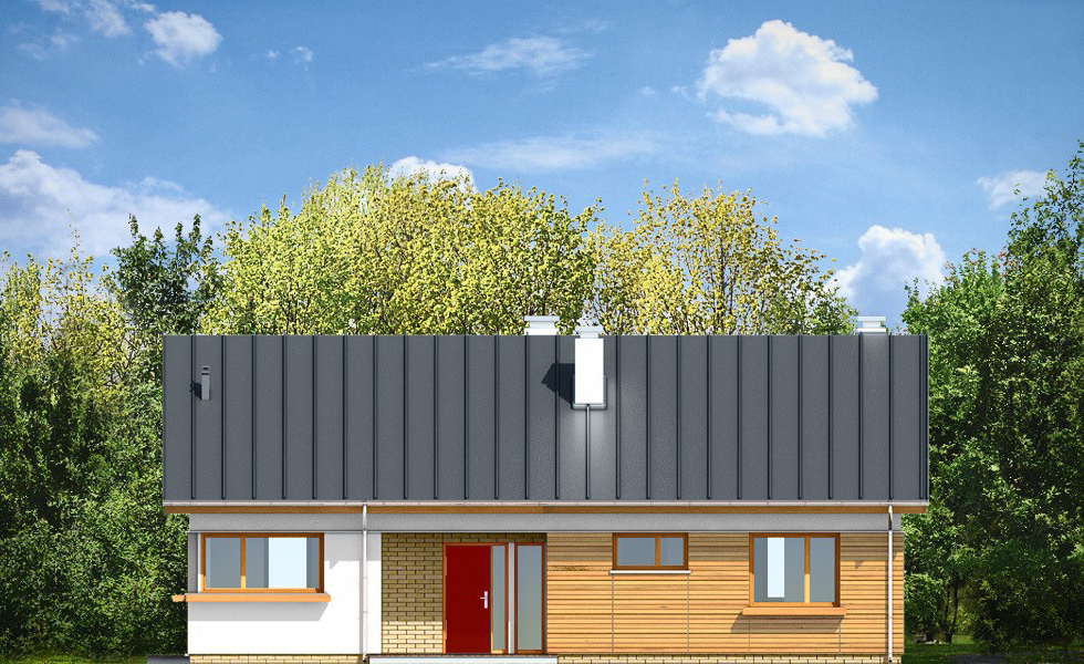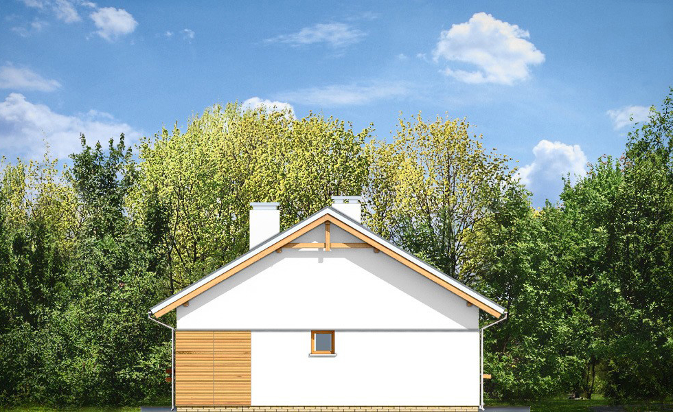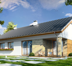 КД-410 — это одноуровневый дом с чердаком под двускатной крышей — для экономных и рачительных хозяев. В первой части дома находится три спальни и две ванные комнаты. Во второй части дома располагается кухня. Не разочарует хозяев и гостиная с мягкой зоной отдыха и камином. Вход в дом обустроен крыльцом. Со стороны двора крыльцо находится под общей крышей, и теплыми вечерами его можно использовать как террасу.