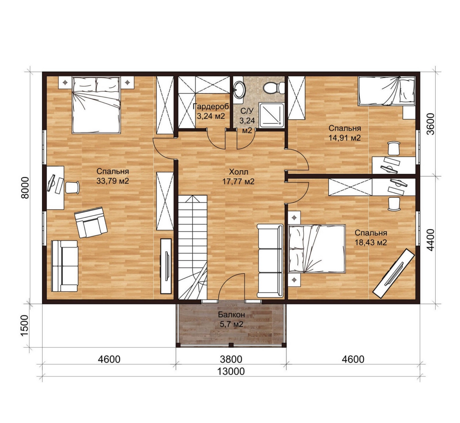 - Каркас: Каркас дома из сухой строганой доски камерной сушки высшего сорта. Силовой каркас, хедеры, ригеля, обвязки каркаса - 50Х150, стропильная система, перекрытия - 50Х200, перегородки- 50Х100, 25Х100 мм