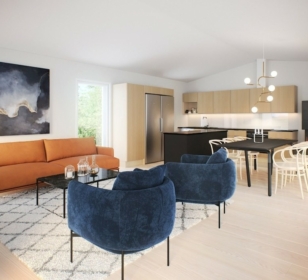 Модный дом КД-50 в стиле Barn House изумительно впишется в любой ландшафтный дизайн любой местности или участка. Кухня-гостиная поразит вас своей функциональностью и дневным светом. В доме находятся 2 комфортные спальни и прекрасно оборудованное помещение под кабинет, также в доме есть несколько подсобных помещений. Дом в стиле Barn House будет радовать вас своей архитектурой, идущей в ногу с современными тенденциями на строительном рынке во всем мире.
