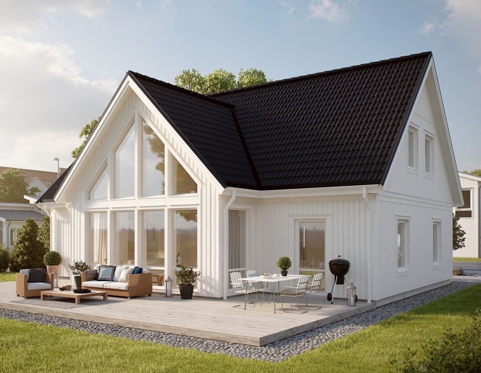 Современный и просторный КД-530 — это продуманная планировка и шведский комфорт. Дом идеально подойдет для большой семьи с детьми. На первом этаже дома расположена спальня, техническое помещение, санузел , кухня и огромная гостиная. На втором этаже находятся три спальни, санузел и просторная общая комната. Изюминкой КД-530 является предусмотренное проектом панорамное остекление гостиной и общей комнаты на мансардном этаже, данное решение делает внутреннюю часть дома очень светлой и воздушной.