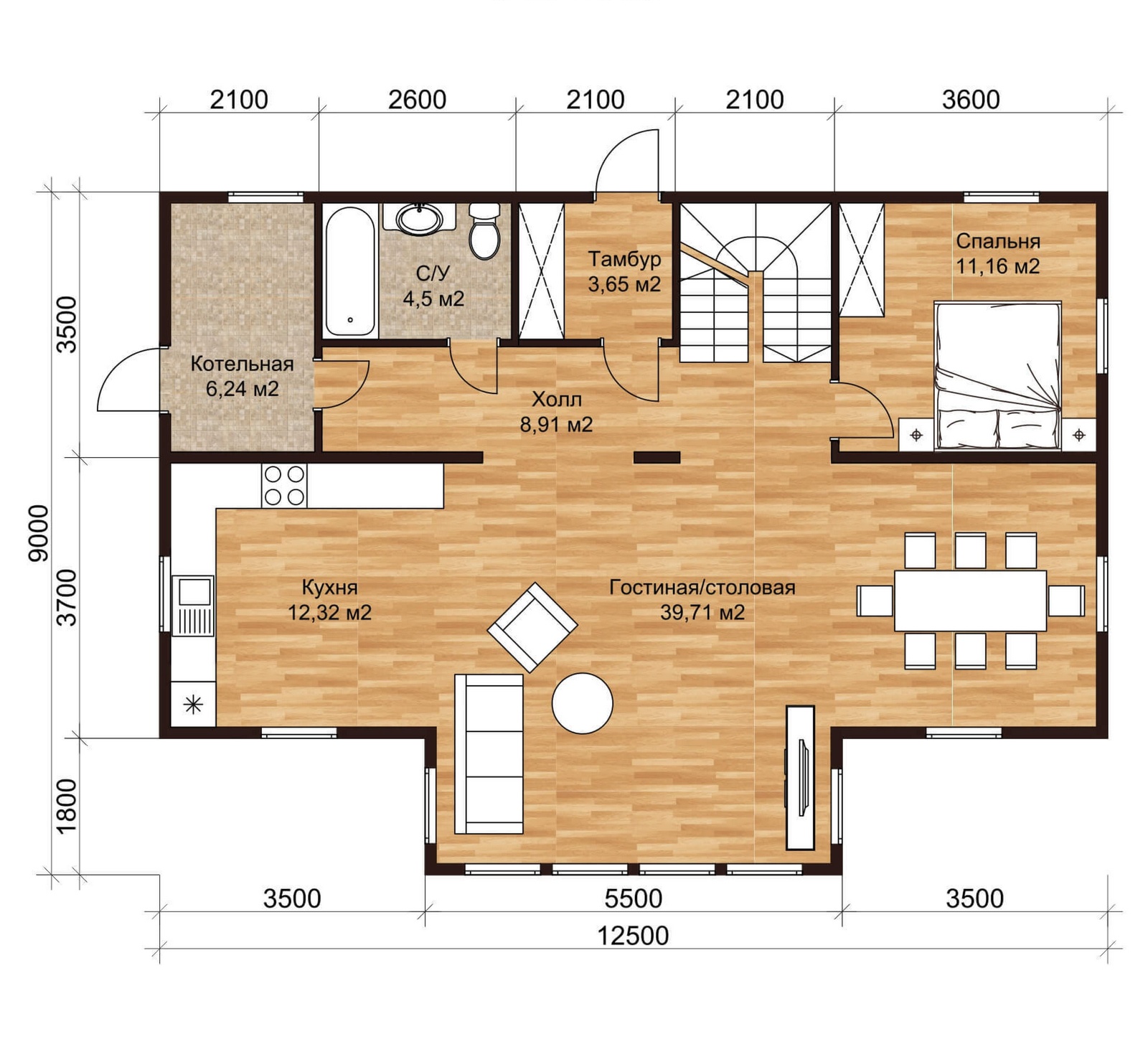 Проект: КД-530 | Размер: 9Х12,5 м | Цена: от 4 528 744 руб.
