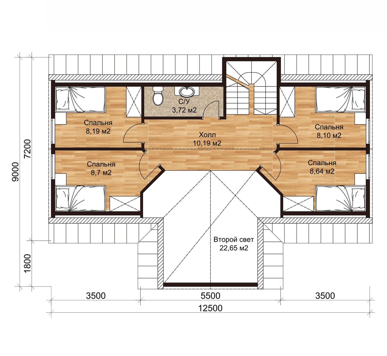 - Каркас: Каркас дома из сухой строганой доски камерной сушки высшего сорта. Силовой каркас, хедеры, ригеля, обвязки каркаса - 50Х150, стропильная система, перекрытия - 50Х200, перегородки- 50Х100, 25Х100 мм
