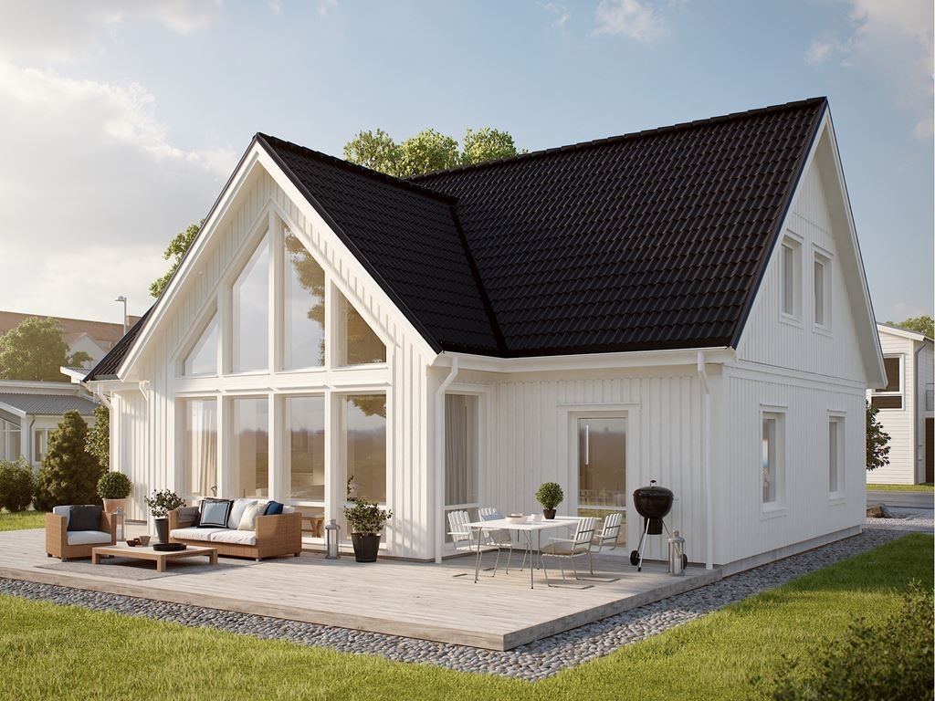 Современный и просторный КД-530 — это продуманная планировка и шведский комфорт. Дом идеально подойдет для большой семьи с детьми. На первом этаже дома расположена спальня, техническое помещение, санузел , кухня и огромная гостиная. На втором этаже находятся три спальни, санузел и просторная общая комната. Изюминкой КД-530 является предусмотренное проектом панорамное остекление гостиной и общей комнаты на мансардном этаже, данное решение делает внутреннюю часть дома очень светлой и воздушной.
