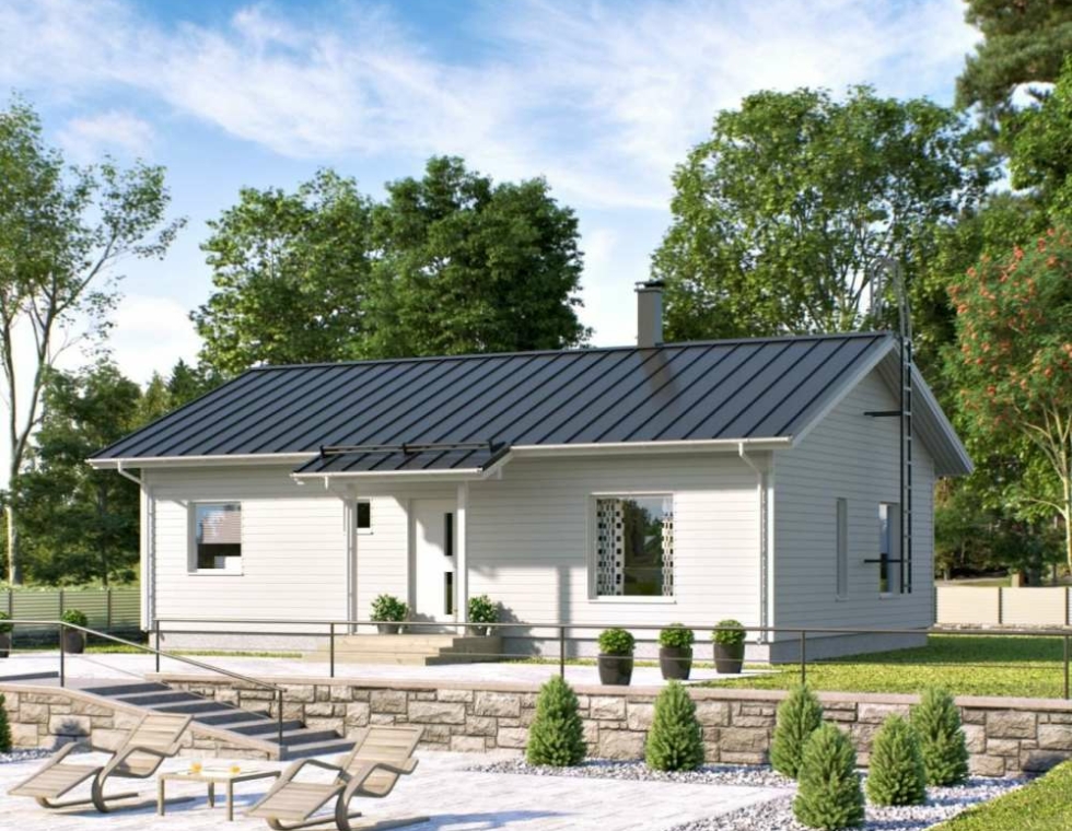 КД 560 – это одноэтажный загородный коттедж в скандинавском стиле. При своих не самых больших размерах, он имеет продуманную и функциональную планировку, а его простая и стильная отделка придает этому дому облик современного и уютного жилища.