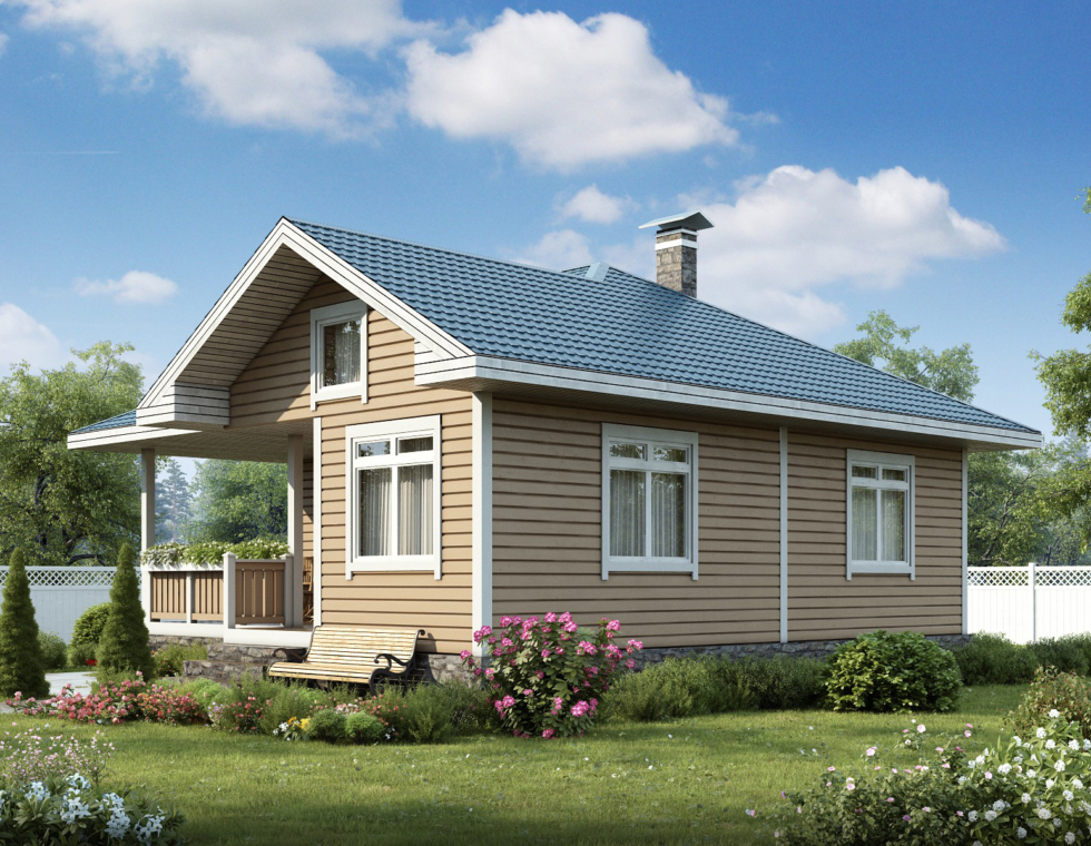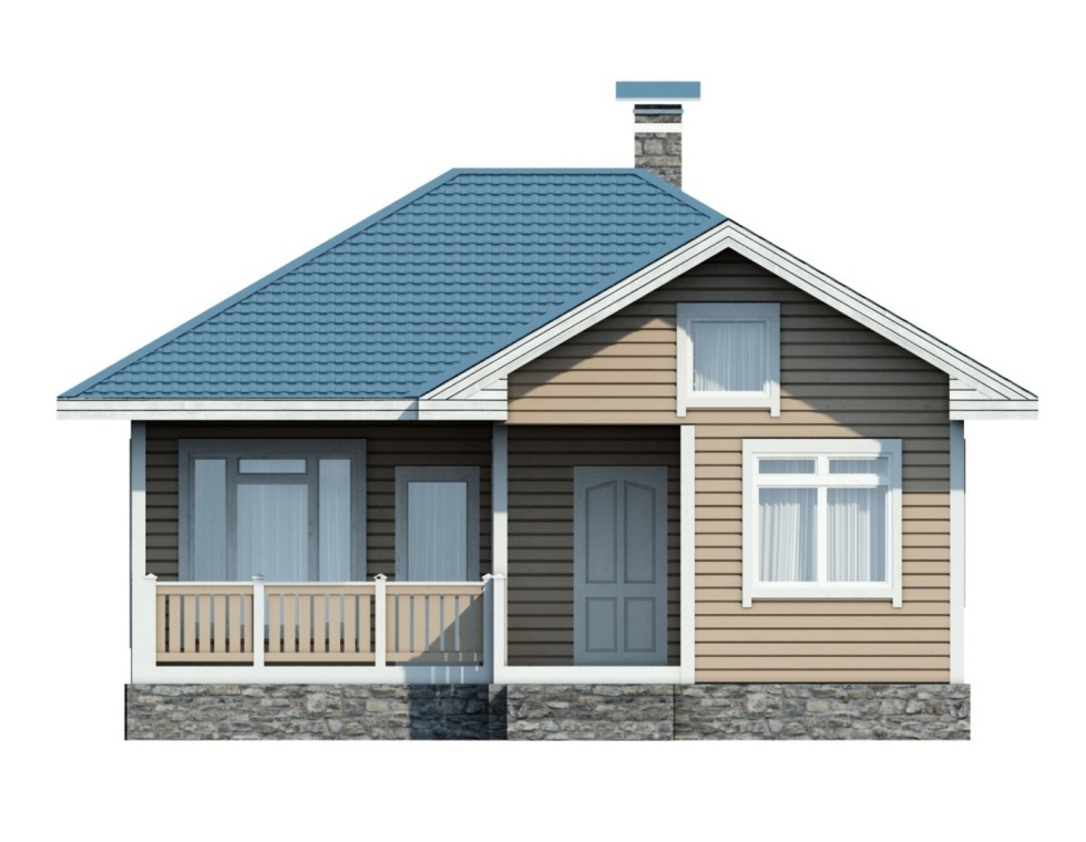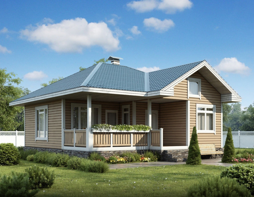 Одноэтажный каркасный дом с террасой и вторым светом, 78 м²