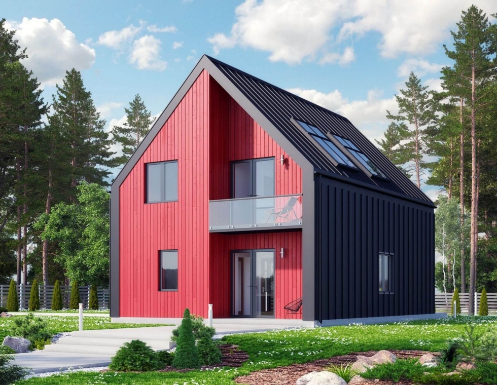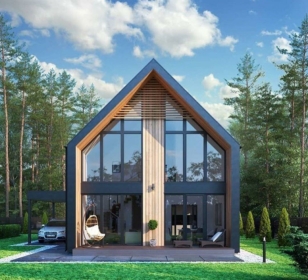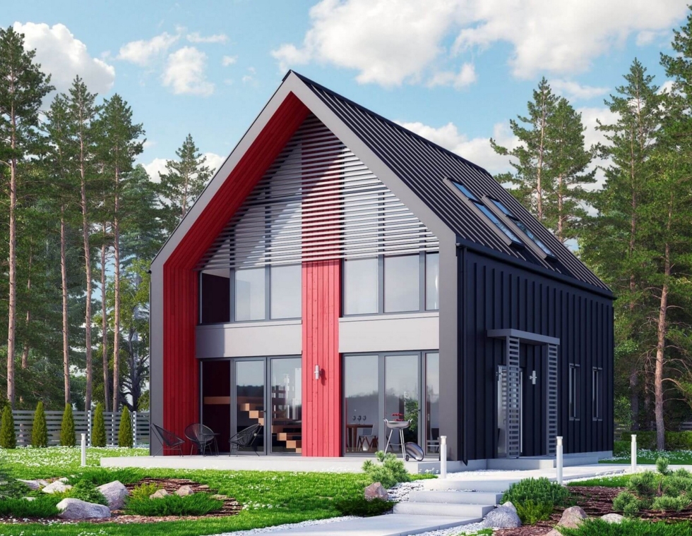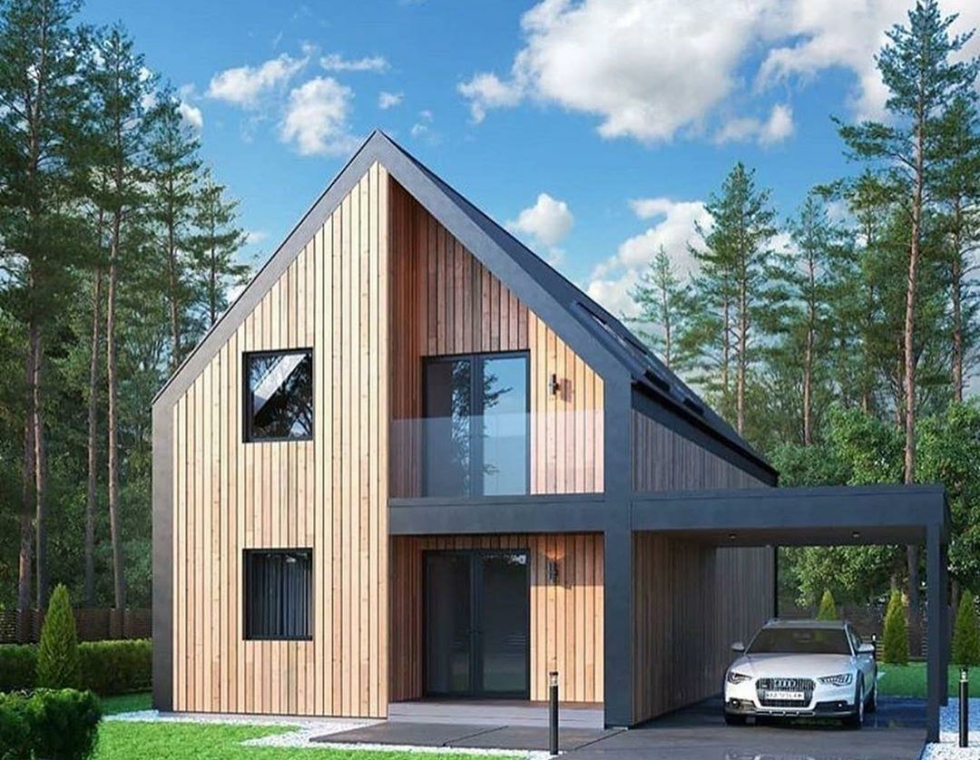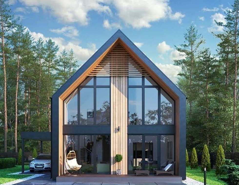 Двухэтажный каркасный дом с панорамными окнами и вторым светом, 161 м²