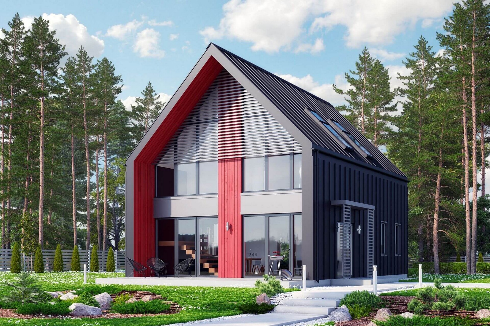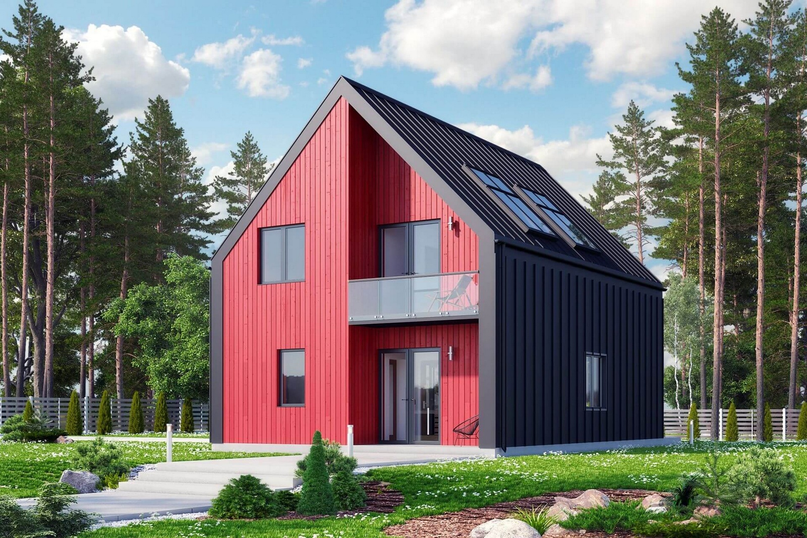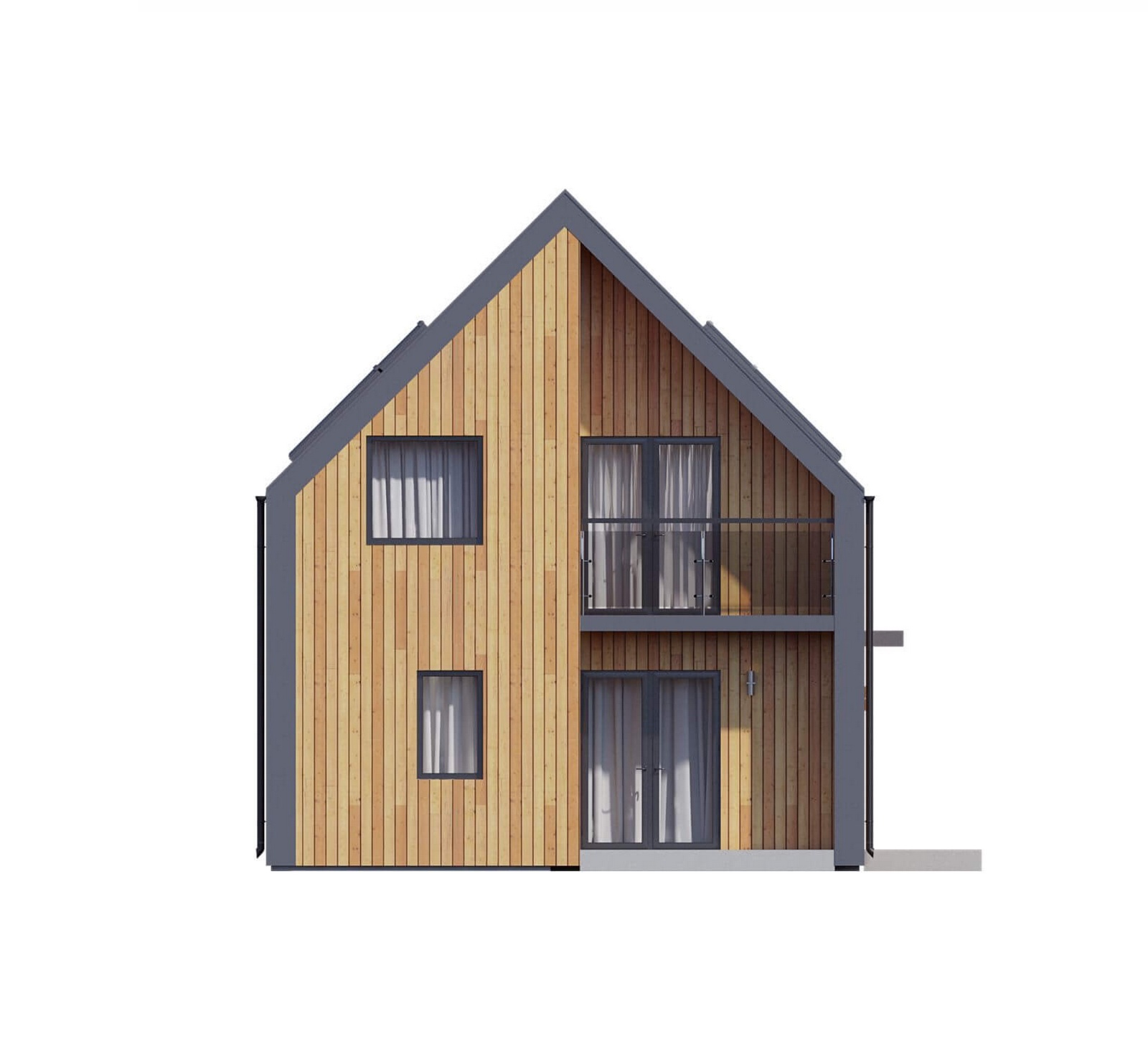 Двухэтажный каркасный дом с панорамными окнами и вторым светом, 161 м²