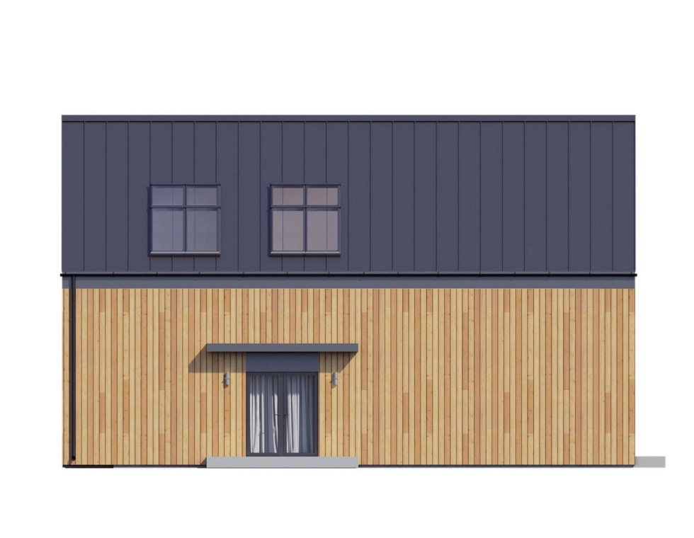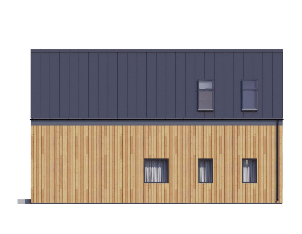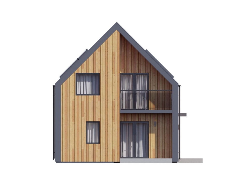 На первом этаже КД-990 располагаются: большая и функциональная кухня-гостиная, спальная, санузел и технической помещение. Кухня и гостиная могут быть разделены барной стойкой – это только добавит помещению функциональности и дополнительной эстетики, а сочетание с большими окнами позволит жильцам постоянно наслаждаться пейзажами вокруг. На втором этаже дома находятся три просторные спальни, санузел и гардеробная.